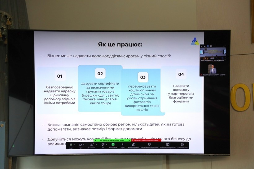 Презентували платформу «Дітям наших Захисників» її координаторка Катерина Самітовська й генеральний секретар Міжнародної торгової палати України та представник компанії «Вертольоти України» Олексій Кожанов. У межах ініціативи бізнес об’єднується, щоб закривати реальні потреби дітей-сиріт – від фінансової підтримки до освіти, лікування, психологічної допомоги та розвитку талантів.