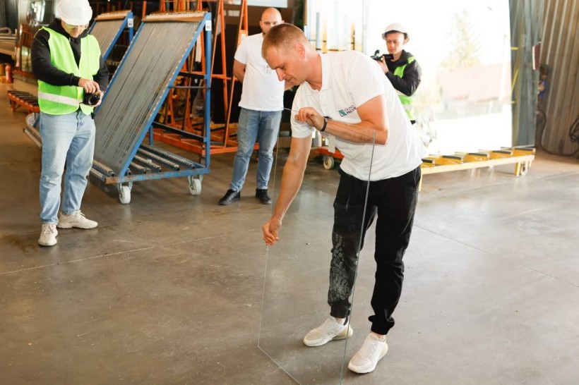 Керівниця області оглянула виробничий процес. На підприємстві встановлена високопродуктивна лінія з виробництва одно- і двокамерних склопакетів різної товщини з використанням в тому числі енергозберігаючого, тонованого, рефлекторного, триплексу та гартованого скла.