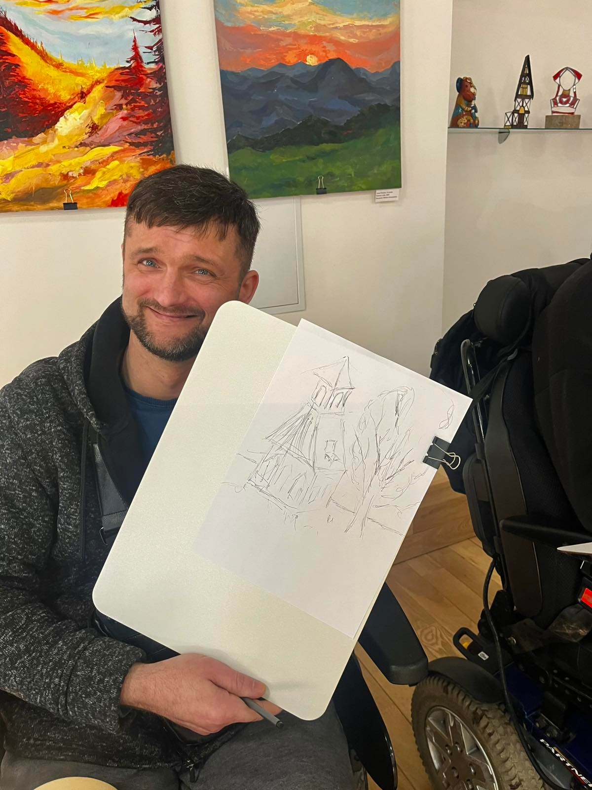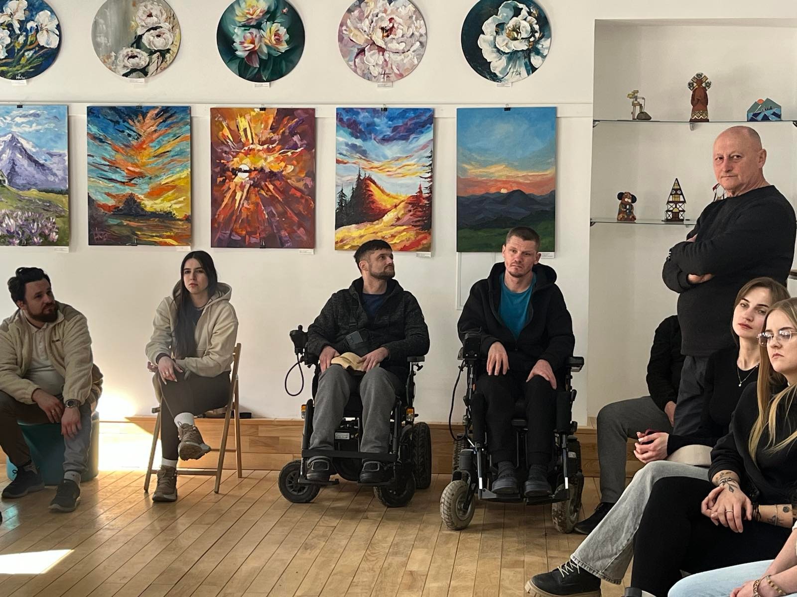Директорка художньої школи Жанна Бондаренко провела для учасників екскурсію виставкою. Вона наголосила на значенні мистецтва для емоційного відновлення.