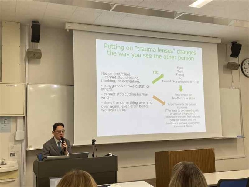 Професор Ніші Дайсуке познайомив делегацію з тренінгами з травмоінформованої допомоги (ТІД) для психіатричних медсестер та державних службовців, а також поділився досвідом впровадження ТІД у програми підготовки лікарів, медсестр та в державному екзамені для медсестер.