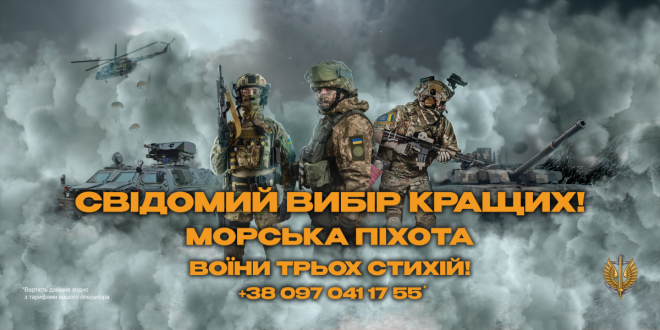 Міністерство оборони України проводить мотиваційну інформаційну кампанію щодо мобілізаційної кампанії та залучення громадян на військову службу за контрактом до підрозділів морської піхоти Військово-Морських Сил Збройних Сил України.