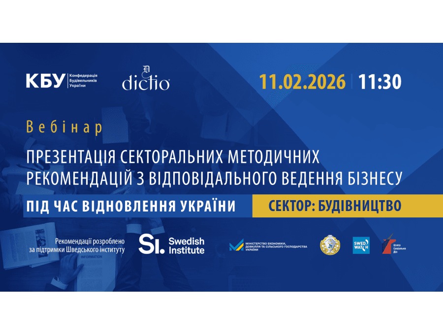 11 лютого 2026 року об 11:30 у форматі онлайн відбудеться вебінар, присвячений розвитку відповідального ведення бізнесу, міжнародним стандартам у сфері бізнесу та прав людини, а також їх практичному застосуванню в українських реаліях.