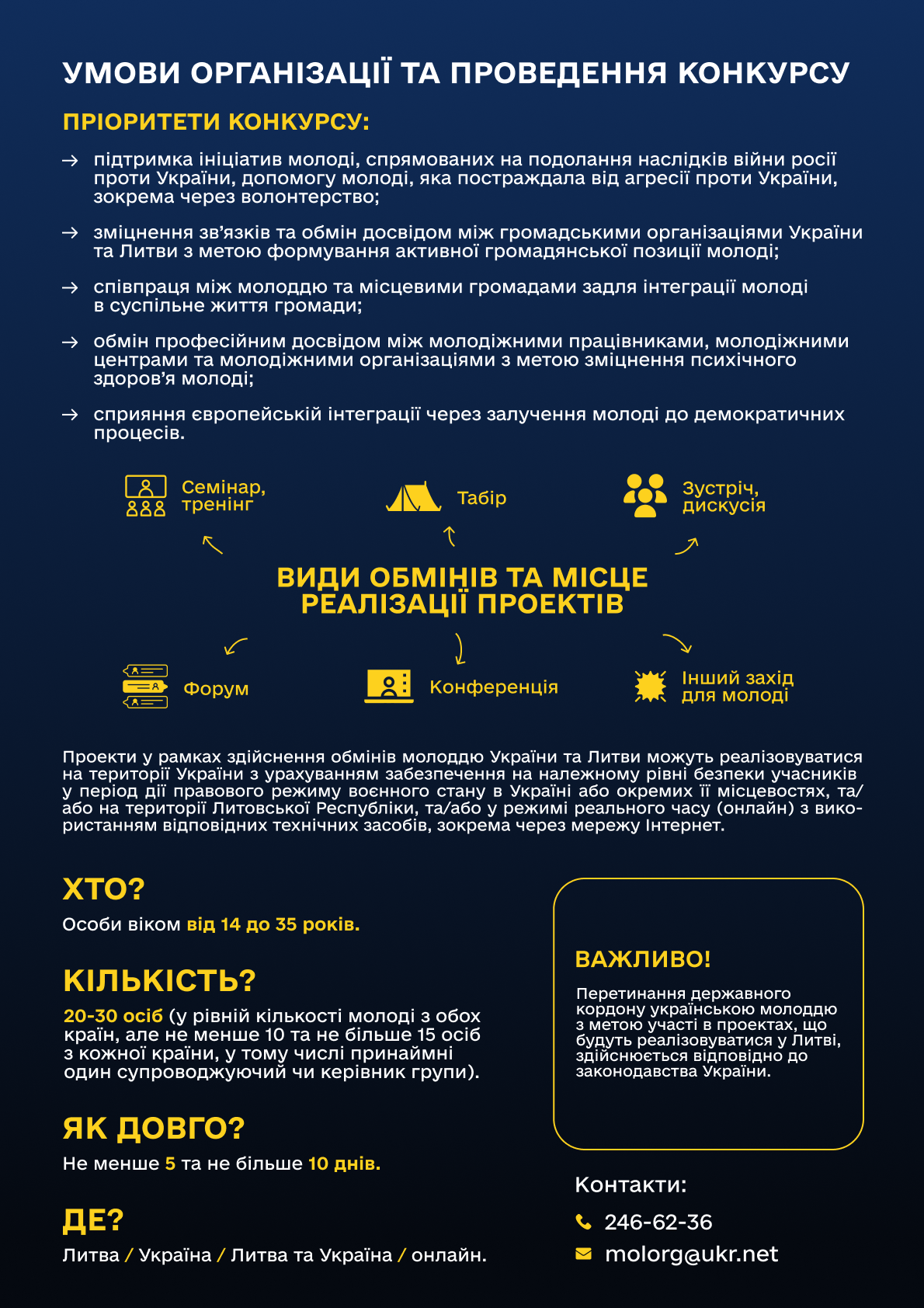 Додаткова інформація: (044) 246-62-36 або molorg@ukr.net