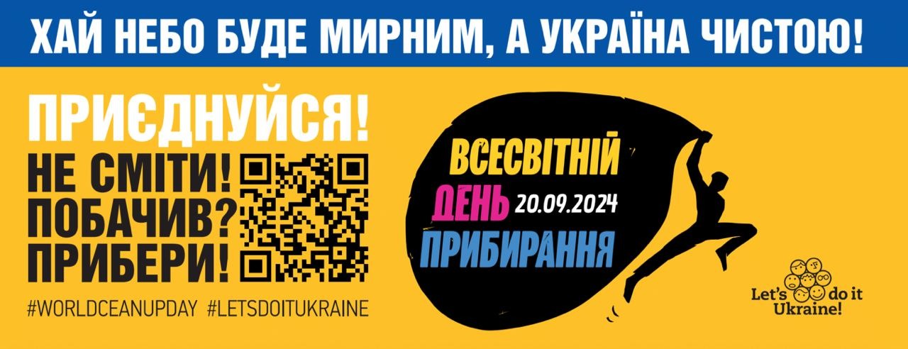 20 вересня 2024 року під гаслом «Зробимо Україну чистою разом!» у 24 регіонах, з дотриманням норм безпеки та обмежень воєнного часу, враховуючи географічні особливості регіонів, Україна традиційно приєднається до Всесвітнього дня прибирання «World Cleanup Day» разом із 211 країнами Світу.
