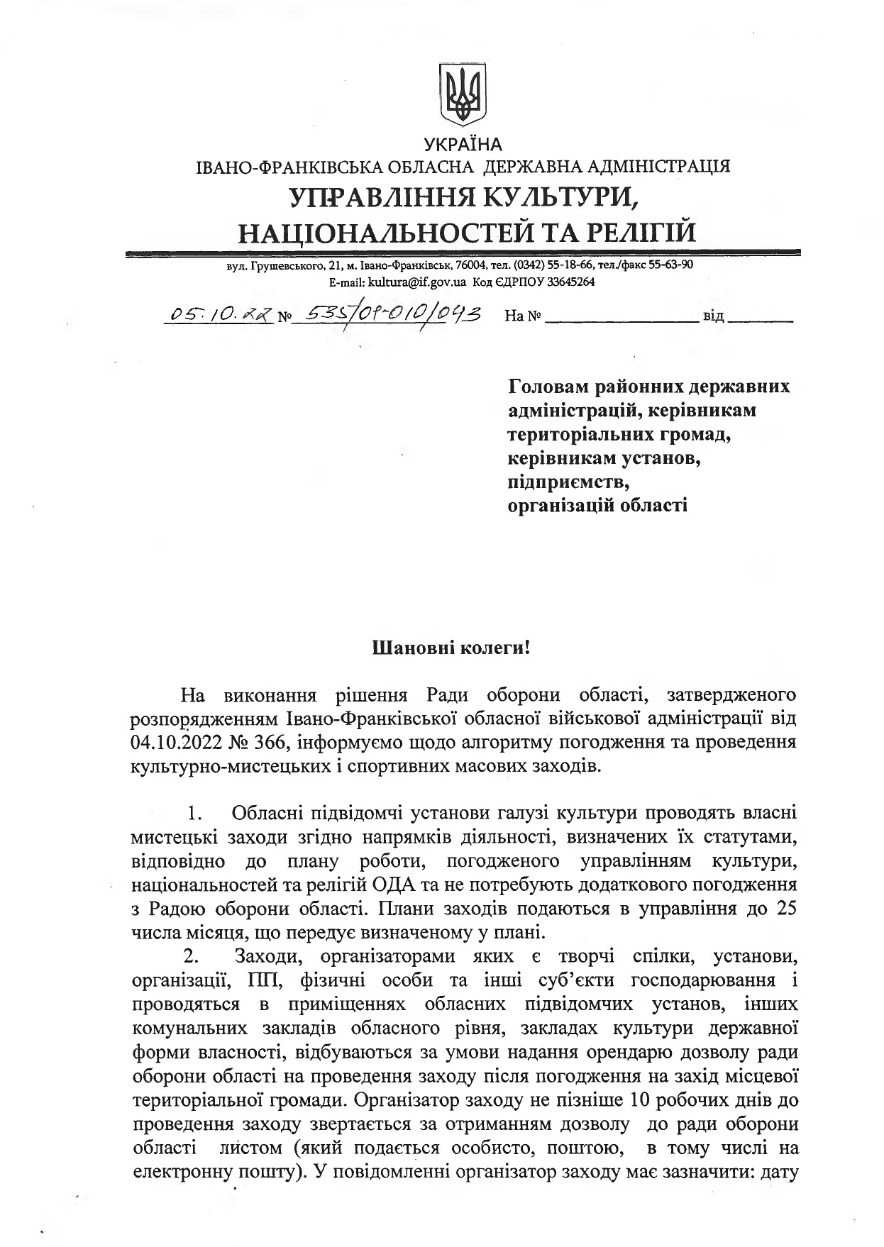 Інформація про алгоритм погодження і проведення культурно-мистецьких і спортивних масових заходів